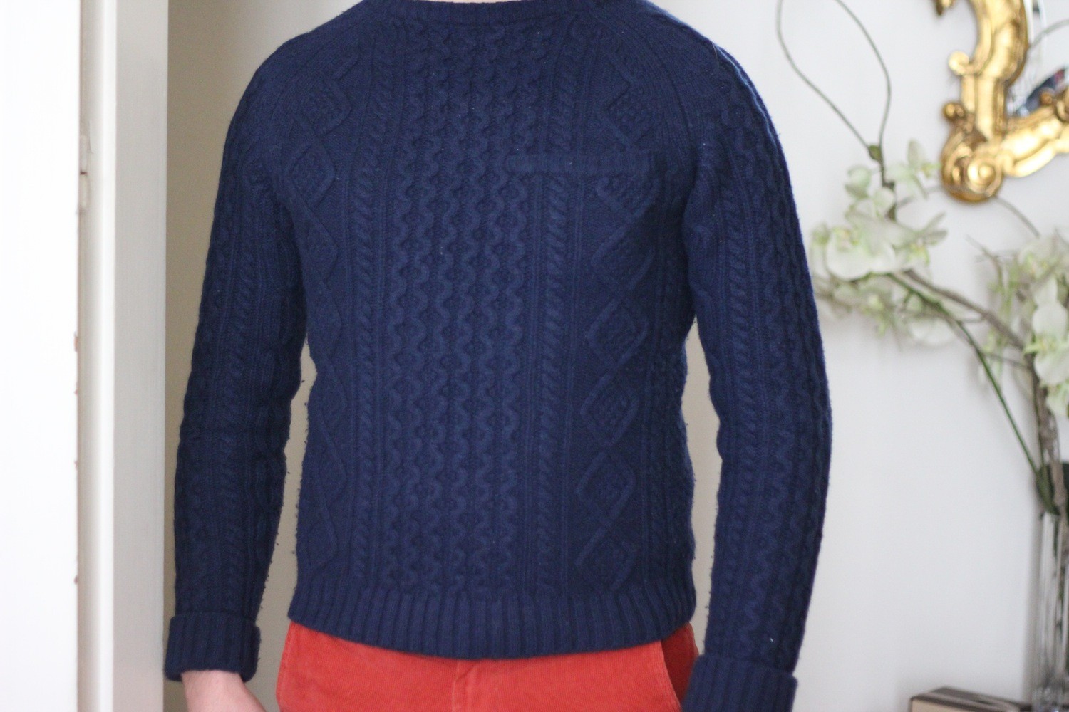Tu as parfaitement raison, le pull à torsades est à nouveau indispensable et c’est tant mieux ! J’adore l’association bleu marine / rouille et je suis bien contente que tu continues tes looks masculins, je les adore ! Merci à toi et à Maxime 🙂