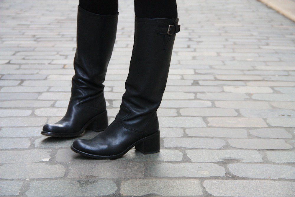 Jolie tenue, les bottes sont superbes et j’aime aussi beaucoup le sac de ton amie, bises 🙂