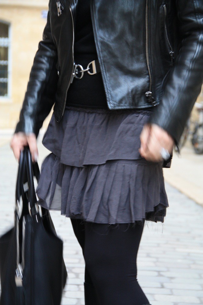 J’adoooooooore cette tenue, il n’y a pas une seule chose que je n’aime pas ! Ce look est superbe, sac, jupe, botte, perfecto, sans oublier Maité qui est magnifique dans cette tenue !