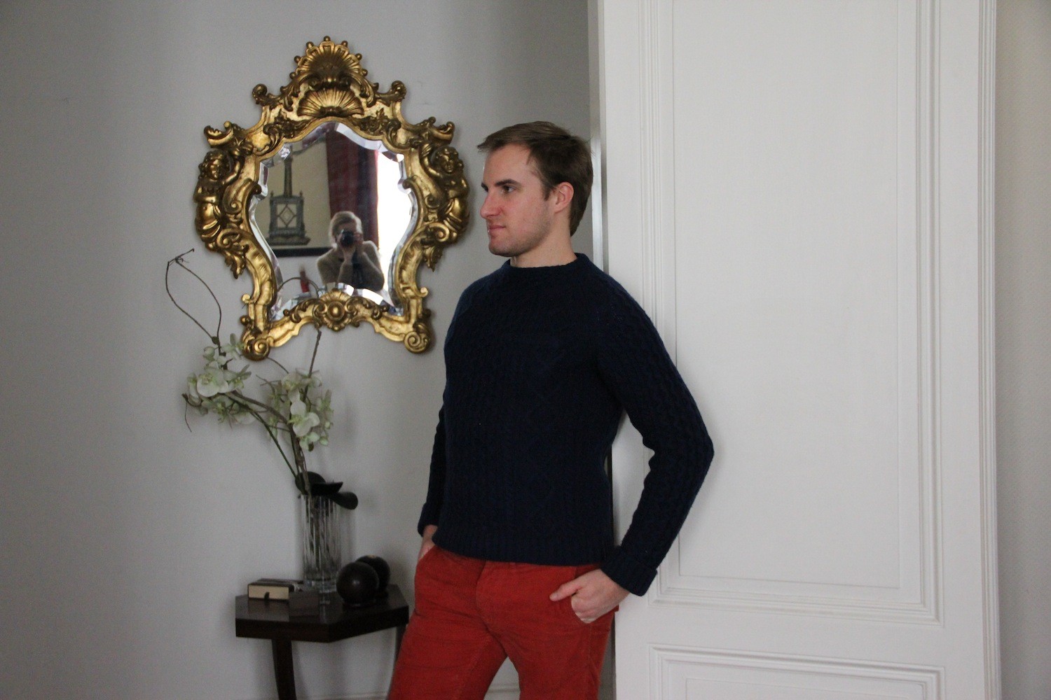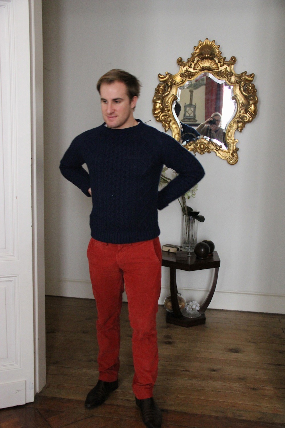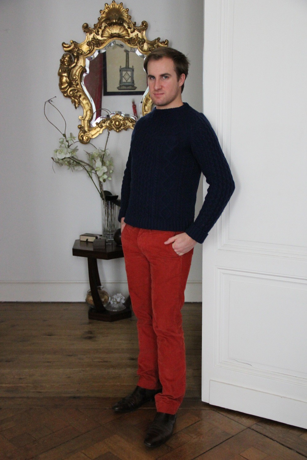 Tu as parfaitement raison, le pull à torsades est à nouveau indispensable et c’est tant mieux ! J’adore l’association bleu marine / rouille et je suis bien contente que tu continues tes looks masculins, je les adore ! Merci à toi et à Maxime 🙂