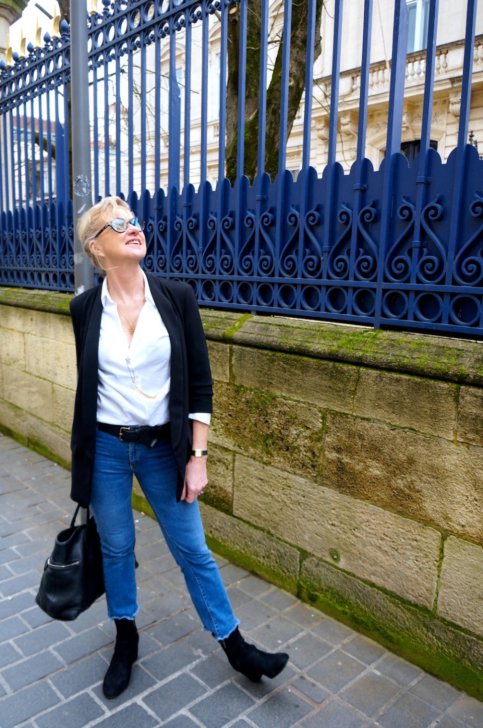Je l’aime bien ton jeans Stradivarius. Associé à cette chemise blanche et ce blazer noir : le chic décontracté que j’aime ! Dis-donc, vous n’avez pas d’hiver à Bordeaux ! A Paris, nous sommes encore dans les frimas, et je t’envie ! Biz